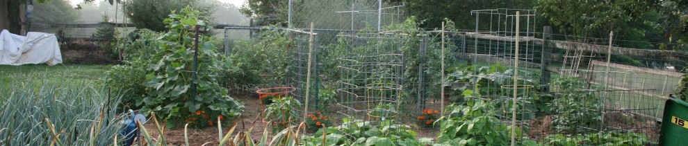 By the way, don’t waste your money buying bean towers. They just aren’t tall enough to take on pole beans. I know, I tried and I lost the battle. I now use 8 foot high fence sections and I still have to direct the bean runners over the top and down the other side. Or use bamboo tepees like those in the picture.
