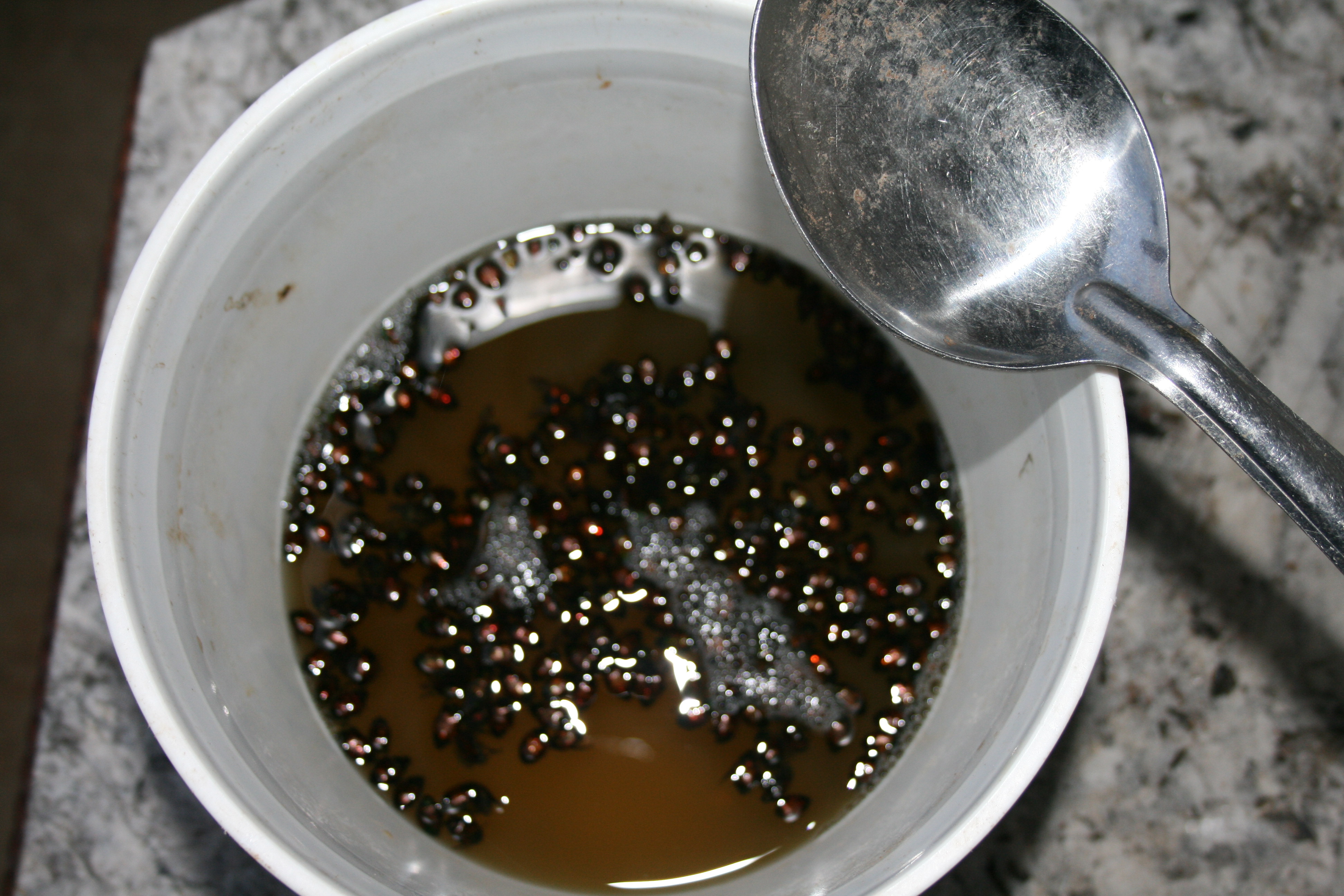 Okay is sounds gross and the resulting “bucket of beetles” looks gross but it works. And there is a perverse satisfaction in slapping them into the water, knowing their destructive activities are over.