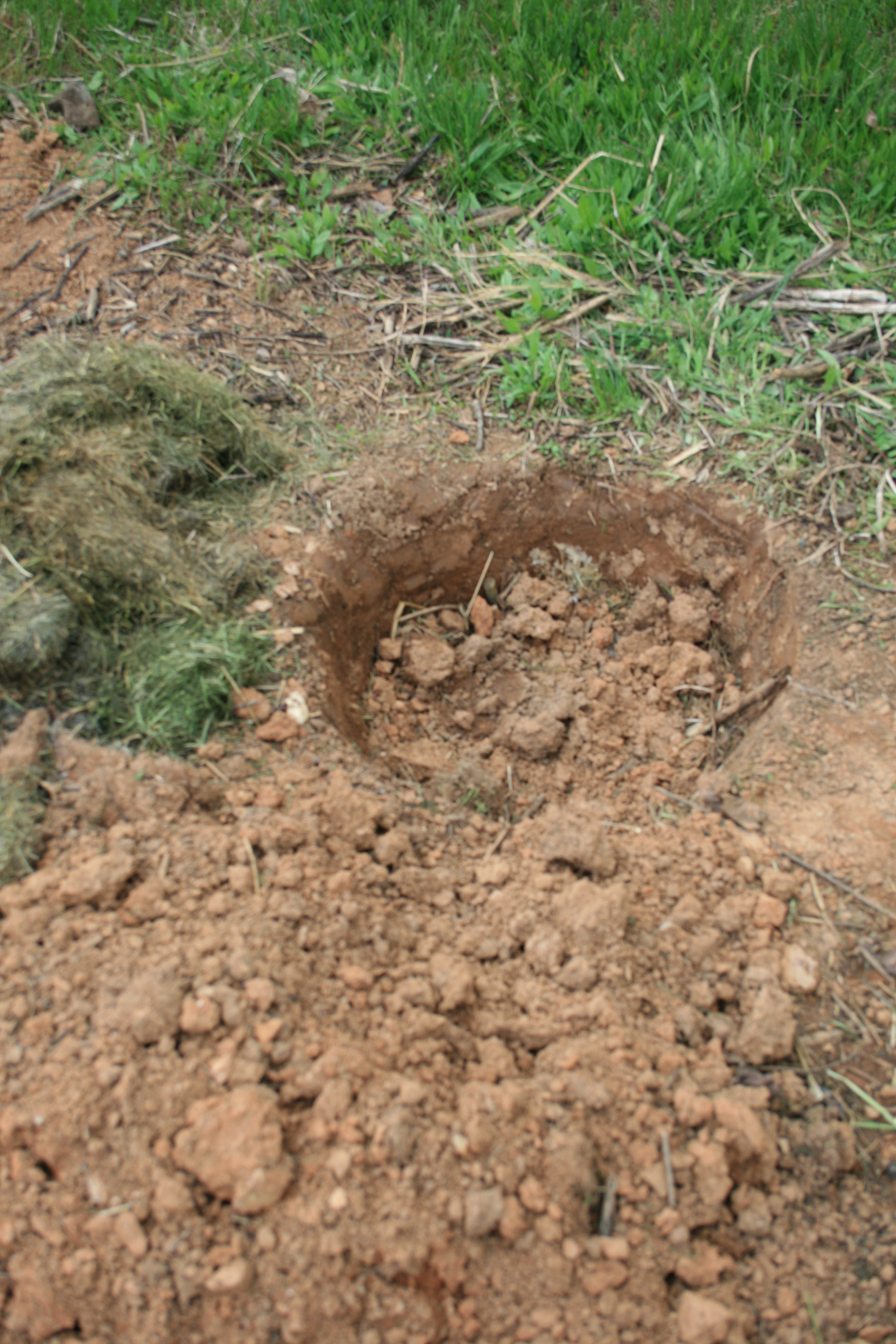 The new baby bushes will be tucked in with some worm castings and some of the native dirt from the hole. They will also have ground cover and topped with grass clippings that will act as mulch and food.