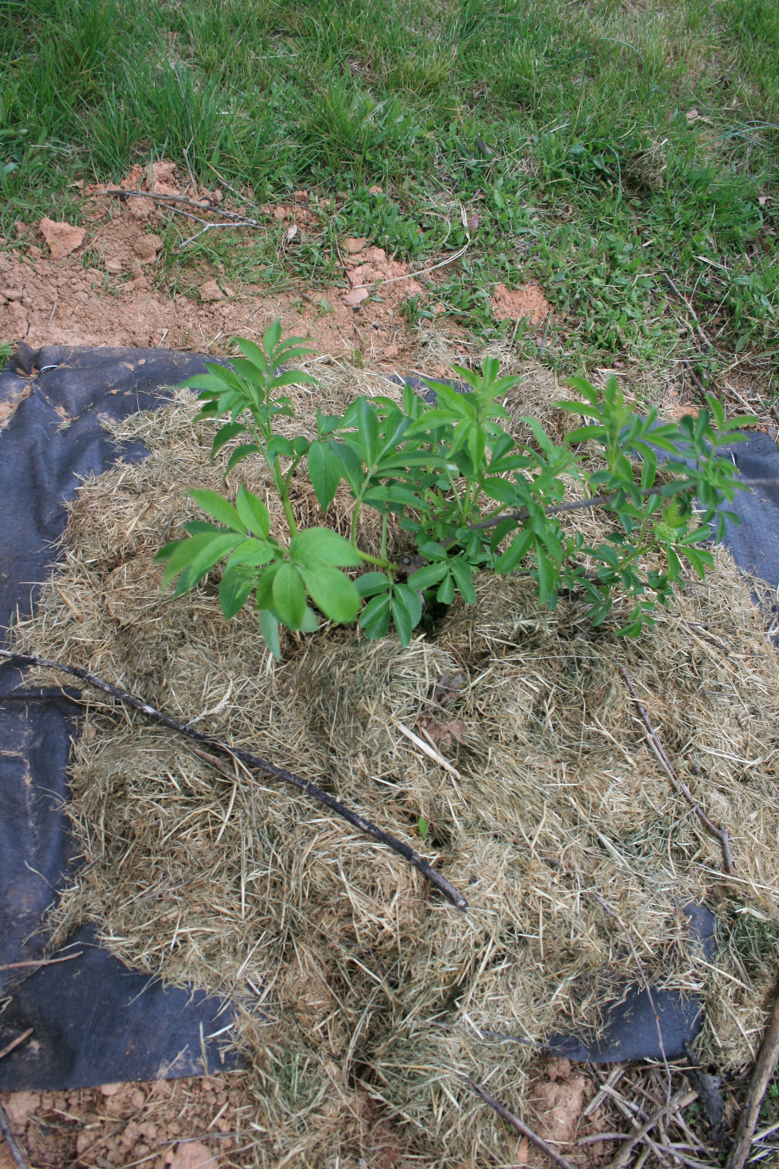 I dug holes for the elderberries, making them about 30 inches deep. Too deep for this bush which is shallow-rooted. But I knew my enemy — the soil.
